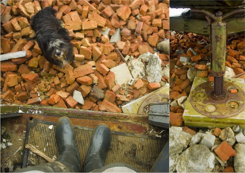 РЛС стоит на небольшом возвышении, вокруг валяется множество битого кирпича.
