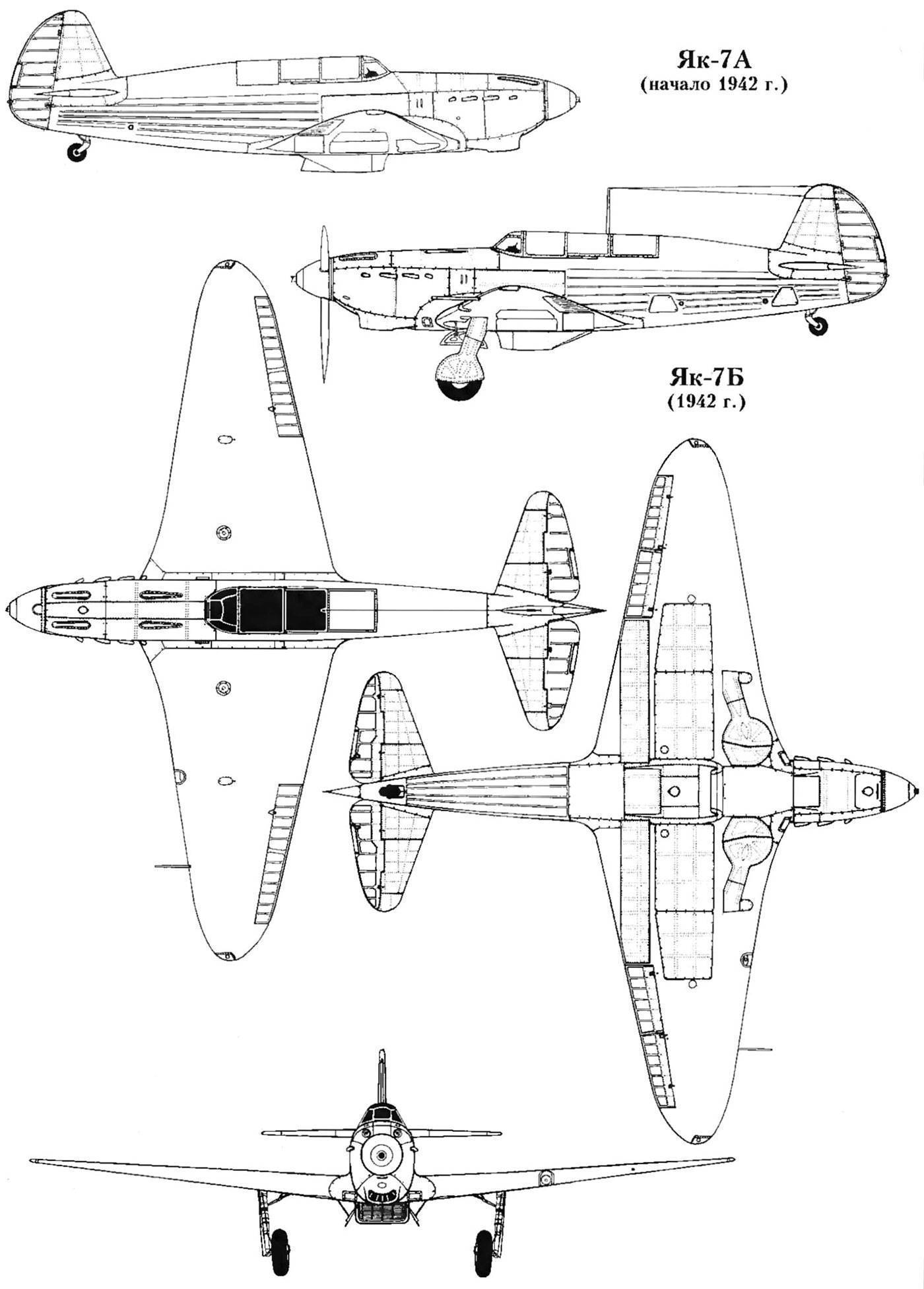 - Як-7Б МПВО — истребитель для авиации ПВО с радиополукомпасом РПК-10 и посадочной фарой.