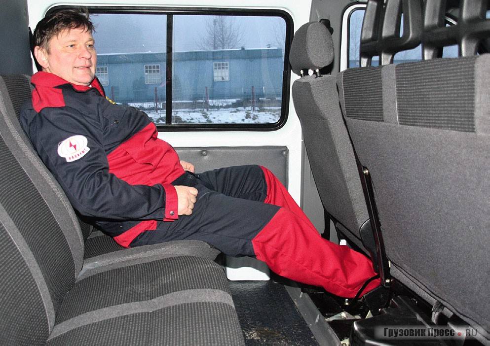 Пассажирское сиденье – удобный двухместный «диванчик», на котором свободно усядутся два взрослых человека, даже плотной комплекции и в зимней одежде. На втором ряду сидений установлен полноценный диван для четырёх взрослых пассажиров. Далее идёт либо кузов (в пикапе), либо грузовой отсек (в цельнометаллическом фургоне). В крыше фургона предусмотрено два люка – хоть для экстренной эвакуации, хоть для охоты «как на сафари».