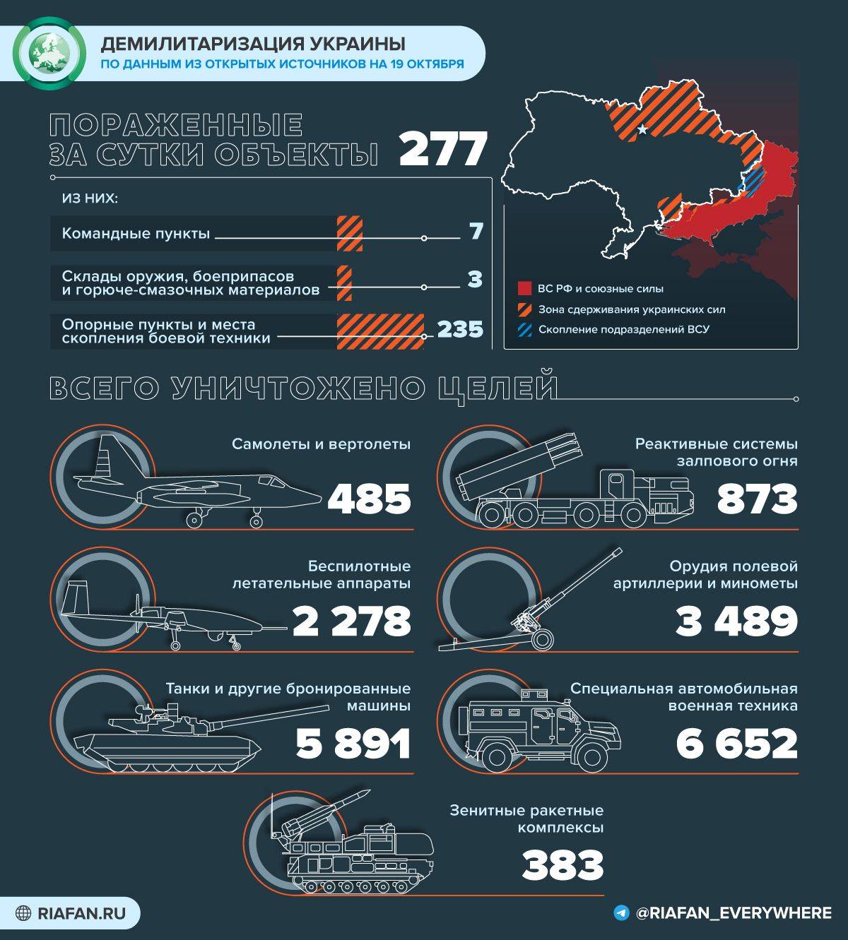 Кроме того, в районе Николаева, Нововоскресенского, Безыменного и Трифоновки Херсонской области поражены части 60-й пехотной, 35-й бригады морской пехоты ВСУ и формирования наемников «Иностранного легиона». Погибли не менее 120 боевиков, 8 бронемашин и 12 автомобилей.
