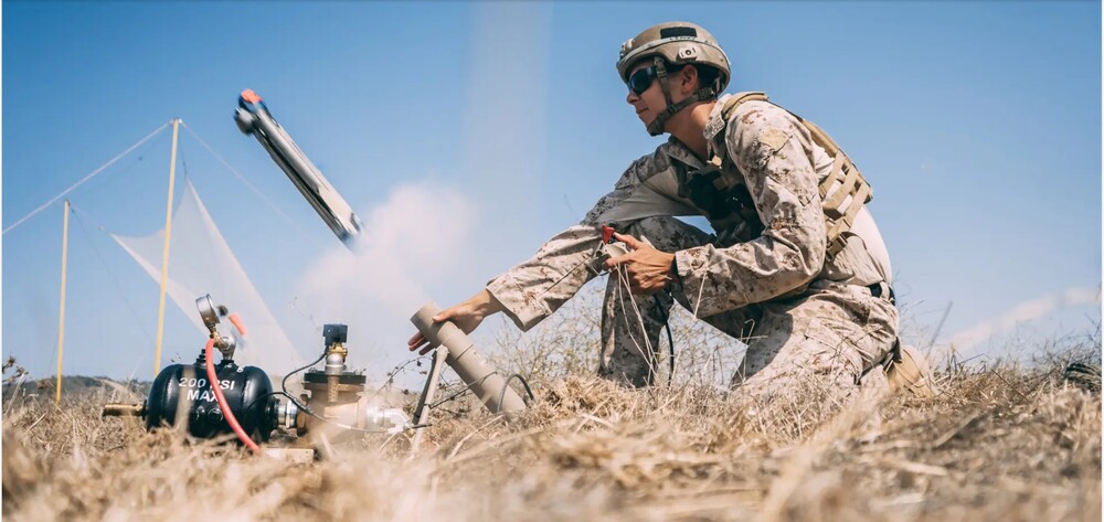 Пусковая установка для Switchblade 300. При запуске дрона из трубы используется сжатый воздух.