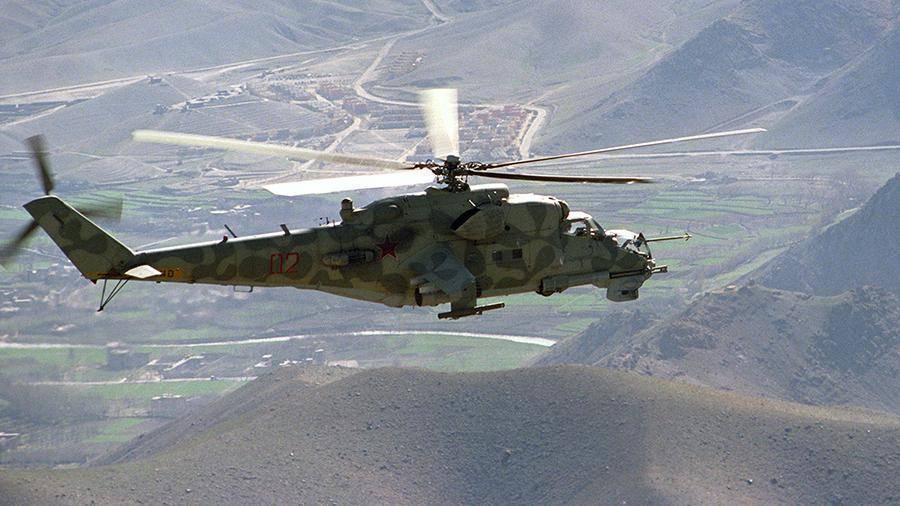 Вертолет Ми-24 направляется на боевое задание. Район дороги Кабул–Герат, Афганистан. 1988 год
