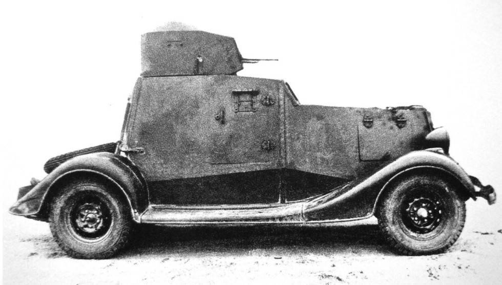 При этом на освободившемся заднем свесе установили топливный бак с защитным бронелистом и уложили запасное колесо. По решению военной комиссии машина обладала «неполноценным бронированием» и применялась как вспомогательная боевая единица.
