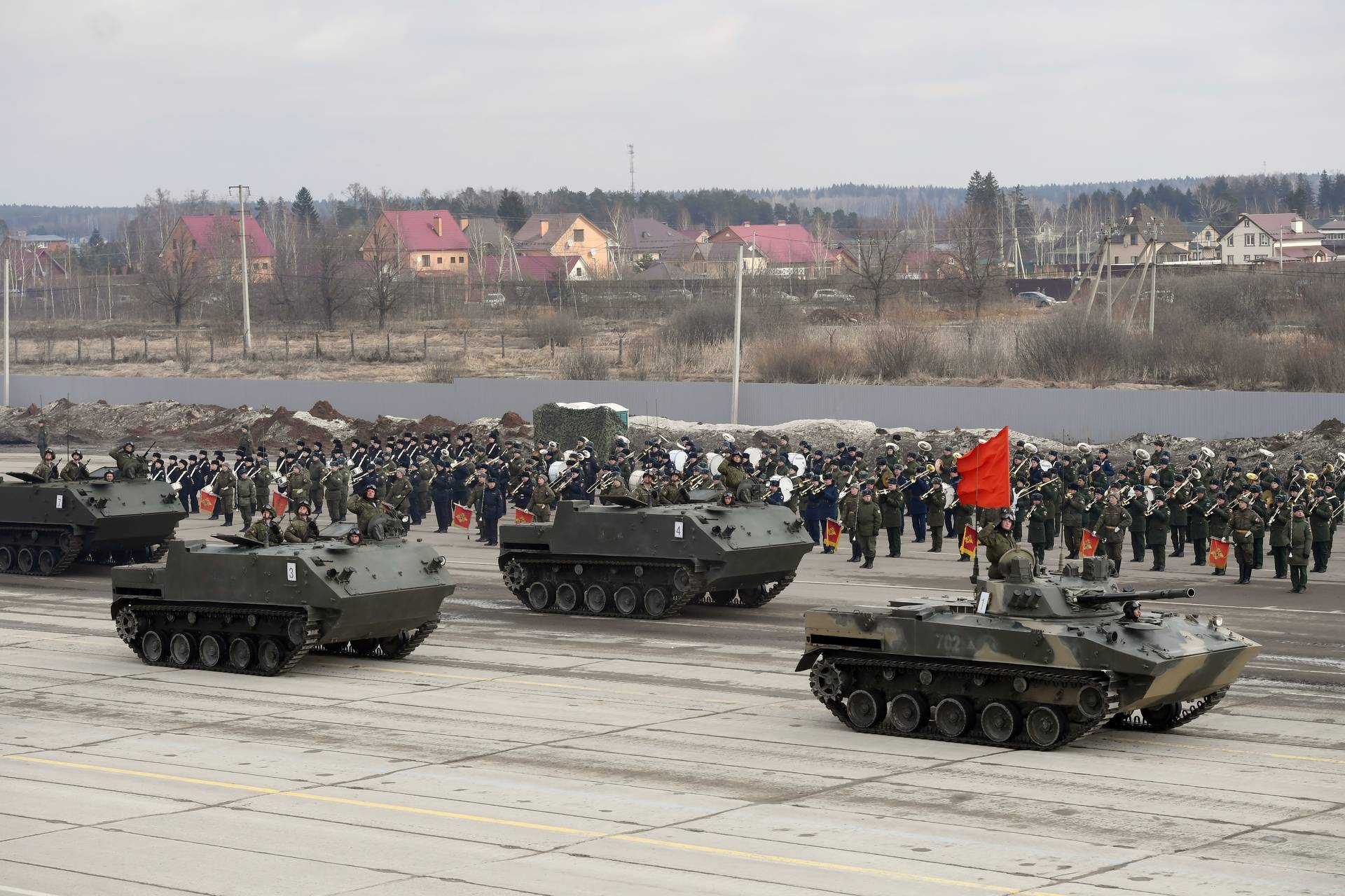 - Бронетранспортёры БТР-МДМ «Ракушка» (на втором плане) и БМД-2 механизированной колонны Московского гарнизона во время тренировки перед военным парадом на Красной площади