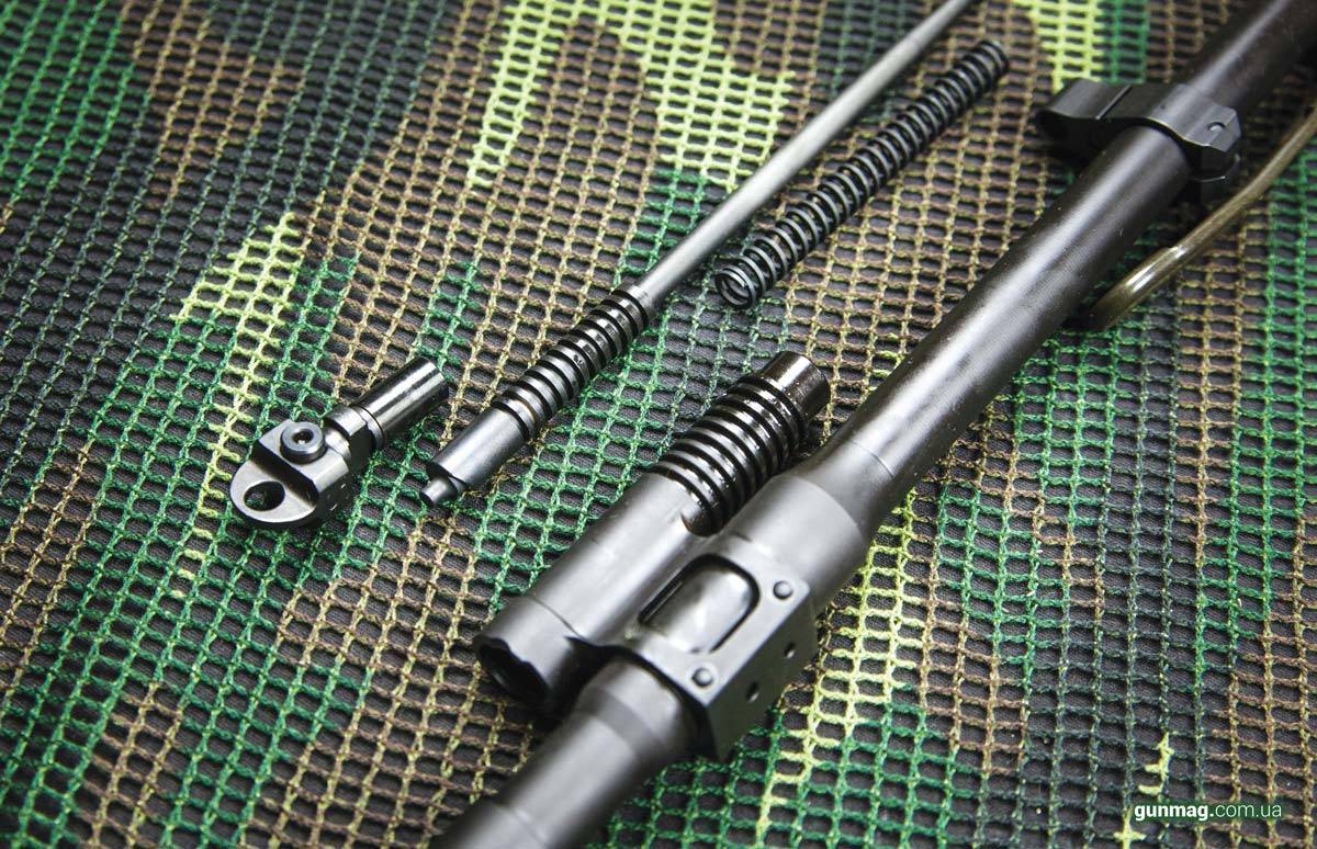 Ствол винтовки без всяких инструментов извлекается из своего посадочного места в ствольной коробке. Так удобнее чистить, а при необходимости его проще заменить