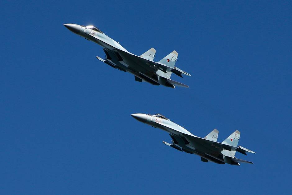 Многофункциональные истребители Су-35 во время учений в Костромской области