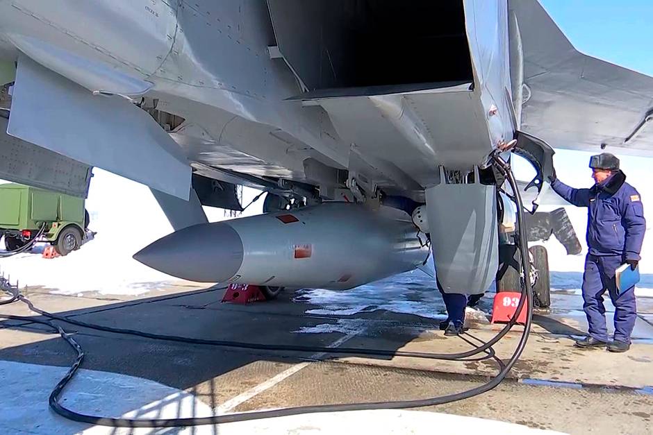 «Уникальные летно-технические характеристики высокоскоростного самолета-носителя позволяют доставлять ракету в точку сброса за считаные минуты, при этом ракета, летящая с гиперзвуковой скоростью, превышающей скорость звука в десять раз, еще и осуществляет маневрирование на всех участках траектории полета. Это позволяет ей также гарантированно преодолевать все существующие и, я думаю, перспективные системы противовоздушной и противоракетной обороны, доставляя к цели на дальность до двух тысяч километров ядерные и обычные боезаряды», — говорил глава государства.