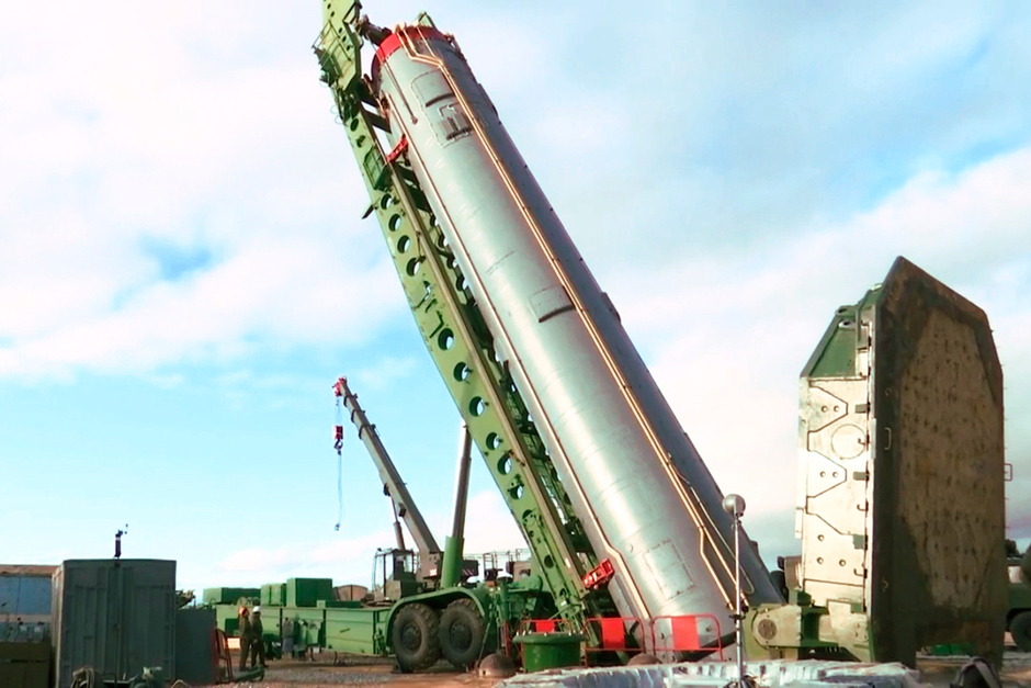 МБР комплекса «Авангард» во время установки в пусковую шахту в Оренбургской области