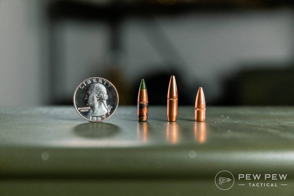 With normal cartridges, you’re most likely to see 55 grain and 62 grain bullets. These are fine to shoot in 1:7 to 1:9 barrels and you probably won’t even notice a difference up to 300 yards.
