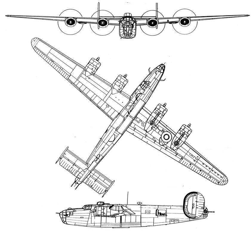 Чертеж бомбардировщика B-24 «Либерейтор»