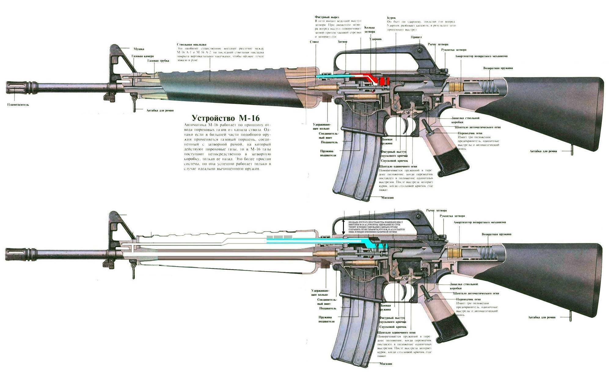 Схема внутреннего устройства штурмовой винтовки M16