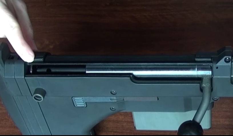 По заявлению производителей так взводить проще, чем натягивая затвор на себя как например у СВД или VSR-10. К тому же тут ход затвора меньше.