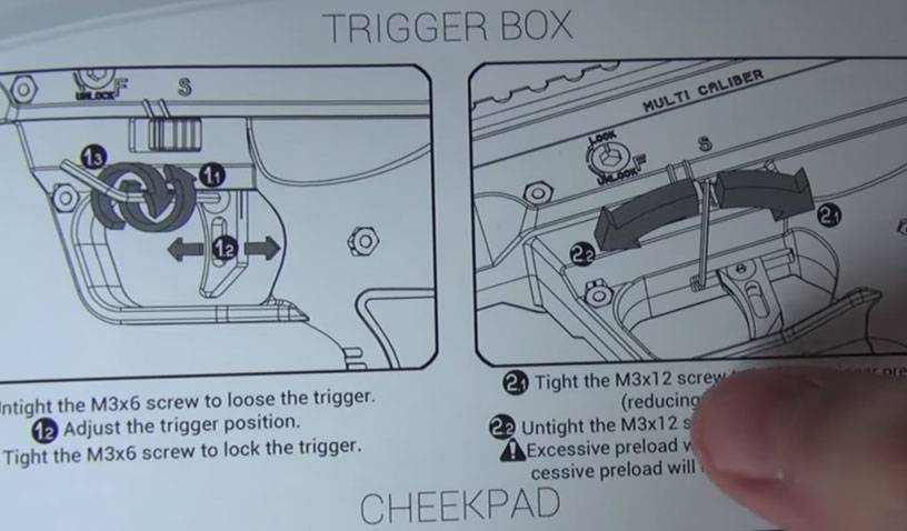 Можно менять высоту подщечника, можно регулировать положение спускового крючка и реакцию на спуск.