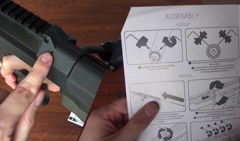Кстати о хоп-апе, он тут уникальный и подкручивает шар в 2 местах. Благородя такому хоп-апу можно тонко регулировать подкрутку шаров, а не только по высоте. Доступ к регулировке осуществляется через верхний ресивер, с помощью шестигранника, для регулировки не нужно снимать оптику или доставать ствол.