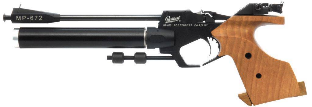 Модель МР-672 создана на базе МР-46 с использованием пневмобаллона. Баллон с предварительной накачкой расположен под стволом. Пневмобаллонная схема обеспечивает большее удобство при стрельбе, чем компрессионная, не снижая характеристик кучности.