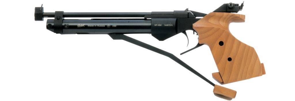 МР-46M (бывший ИЖ-46) − спортивный пневматический пистолет компрессионного типа. Выпускается с 1988 года. Его основное отличие – компрессор с ручным взводом, расположенный под стволом. То есть для стрельбы не нужны газовые баллоны, зарядку производит сам стрелок. Эта популярная модель также соответствует правилам Международного стрелкового союза для стрельбы по неподвижной мишени на дистанции 10 метров. На счету МР-46M − высшие награды, завоеванные на чемпионатах мира и Европы. Пистолет имеет широкие возможности для индивидуальных регулировок. В 2016 году была разработана уменьшенная версия для начинающих спортсменов.