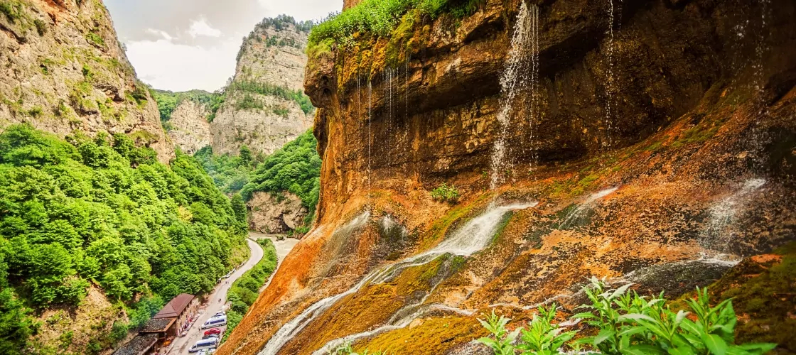 Еще один природный символ Кабардино-Балкарии — комплекс Чегемских водопадов. Горные потоки ниспадают с высоты в 30—60 метров, выделяют три крупных водопада и несколько десятков тонких водных струй. Среди местных жителей бытует легенда, что эти потоки — слезы местного старейшины. Зимой Чегемские водопады частично замерзают, на льду можно наблюдать яркую игру зимнего солнца, на водопой собираются дикие животные.