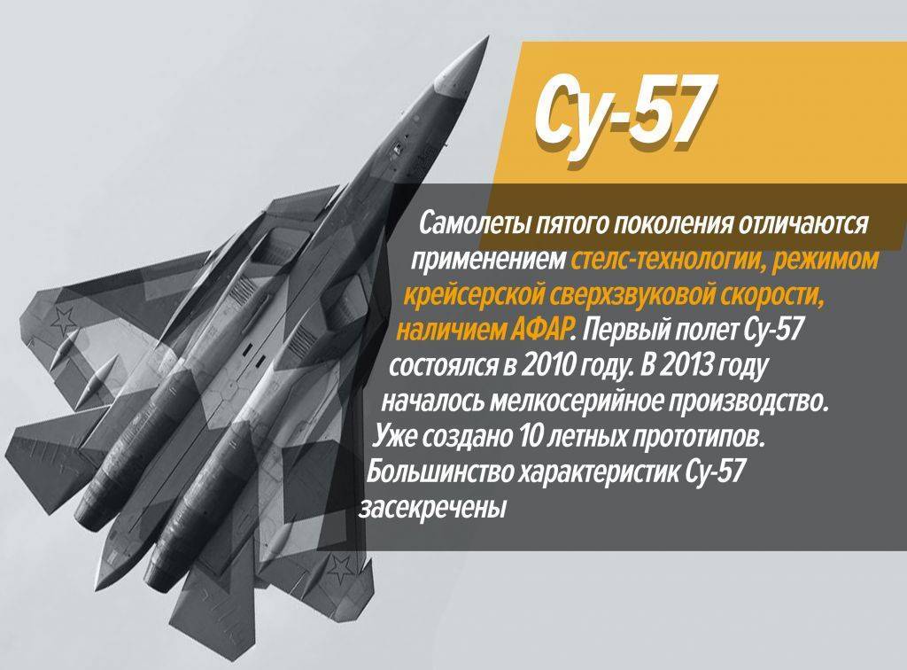 Первый полет российского истребителя пятого поколения состоялся 29 января 2010 года. С тех пор успешно проведено уже несколько сотен испытательных вылетов. В 2013 году началось мелкосерийное производство самолетов Су-57. На сегодняшний день уже создано десять летных прототипов.