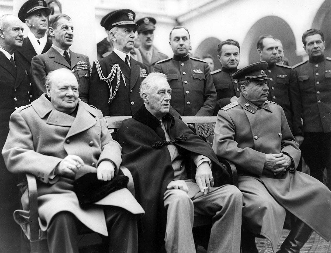 Черчилль, Рузвельт и Сталин на Ялтинской конференции, февраль 1945 г.