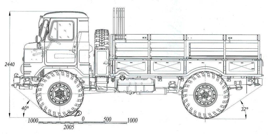 - Снаряжённая масса – 3,2 т, в том числе: на переднюю ось – 1,435 т, на заднюю ось – 1,765 т.