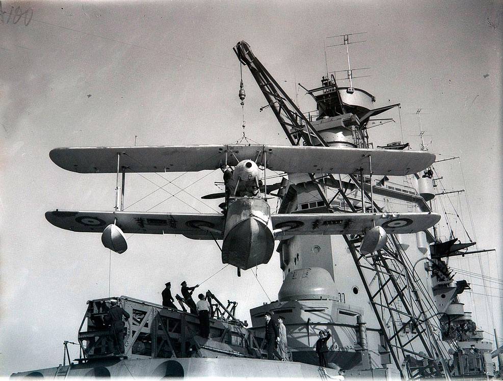 Спуск на воду гидроплана «Уолрес Mk.I» с борта британского линкора «Родней».