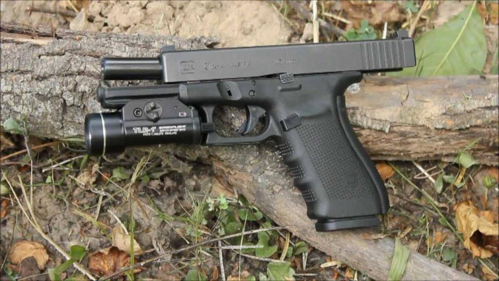 - 21SF. Данный вариат оснащен двухсторонней кнопкой для обоймы. Для рукояти характерна уменьшенная ширина и наличие универсального крепления Пикатинни, благодаря которому Glock 21SF можно оснастить тактическим фонариком и лазерным целеуказателем. Производится данная модификация с 2007-го.