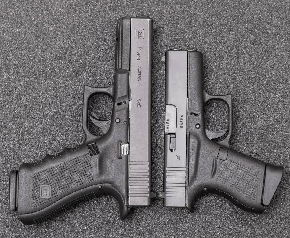 Стандартный Glock 17 и «малыш» Glock 43 —сравнение габаритов