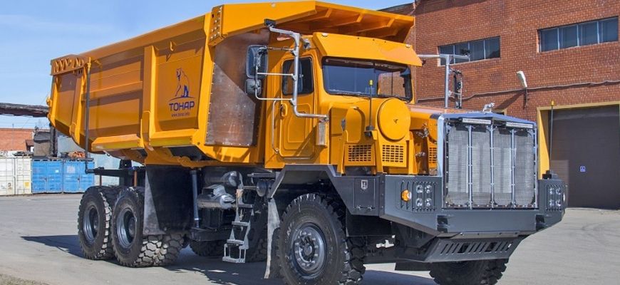 Нижняя часть всего блока расположена слишком низко, вследствие чего возможно попадание дорожной пыли и грязи летом, а снега — зимой. Фото карьерного самосвала Шакман