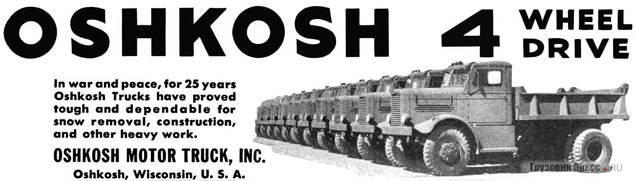 До 1930-х годов полноприводные грузовики Oshkosh не рассматривались американскими военными в качестве потенциальных армейских автомобилей. Лишь в 1934 г. армия приобрела некоторое количество 5-тонных самосвалов. В 1940 г. на Абердинском полигоне проходил испытание строительный тягач Oshkosh TR со всеми ведущими и управляемыми колёсами, приспособленный для буксировки 155-мм пушки М1 и 8-дюймовой гаубицы М1. Машину оснастили переходным устройством, позволяющим транспортировать орудие в полуприцепном состоянии и обходиться без орудийного передка. С 14-тонной пушкой М1 тягач мог развивать скорость до 40 км/ч, однако из-за высокого силуэта и уязвимости шин на вооружение он принят не был.