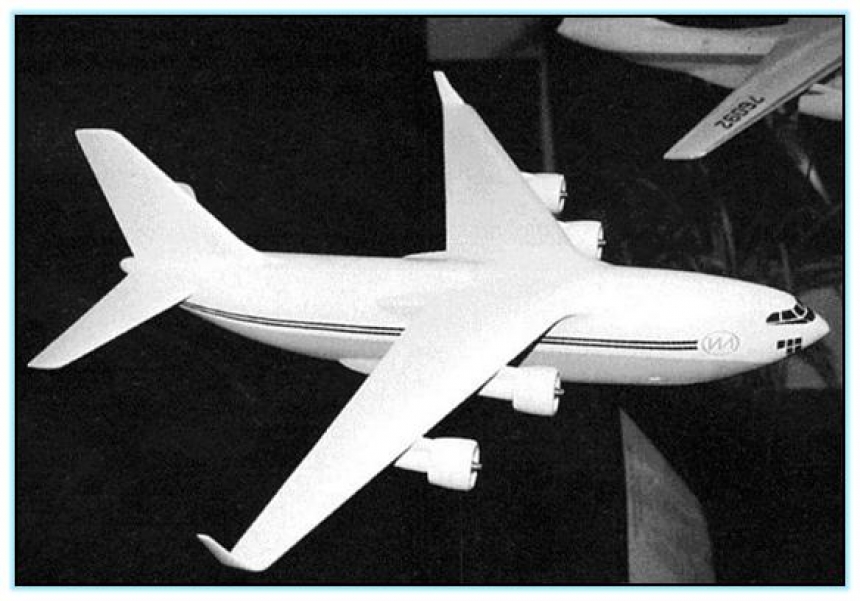 Ил-106 – это довольно старый ильюшинский проект, разработка которого началась еще в середине 80-х. Тогда был объявлен конкурс на создание нового транспортного самолета, который бы заменил Ил-76. Свои предложения представили ОКБ Туполева, Ильюшина и Антонова, ильюшинский проект был признан победителем. Новый самолет получил обозначение Ил-106, его планировали закончить до 1995 года, а в 1997 году запустить в серию. По понятным причинам этого так и не случилось.
