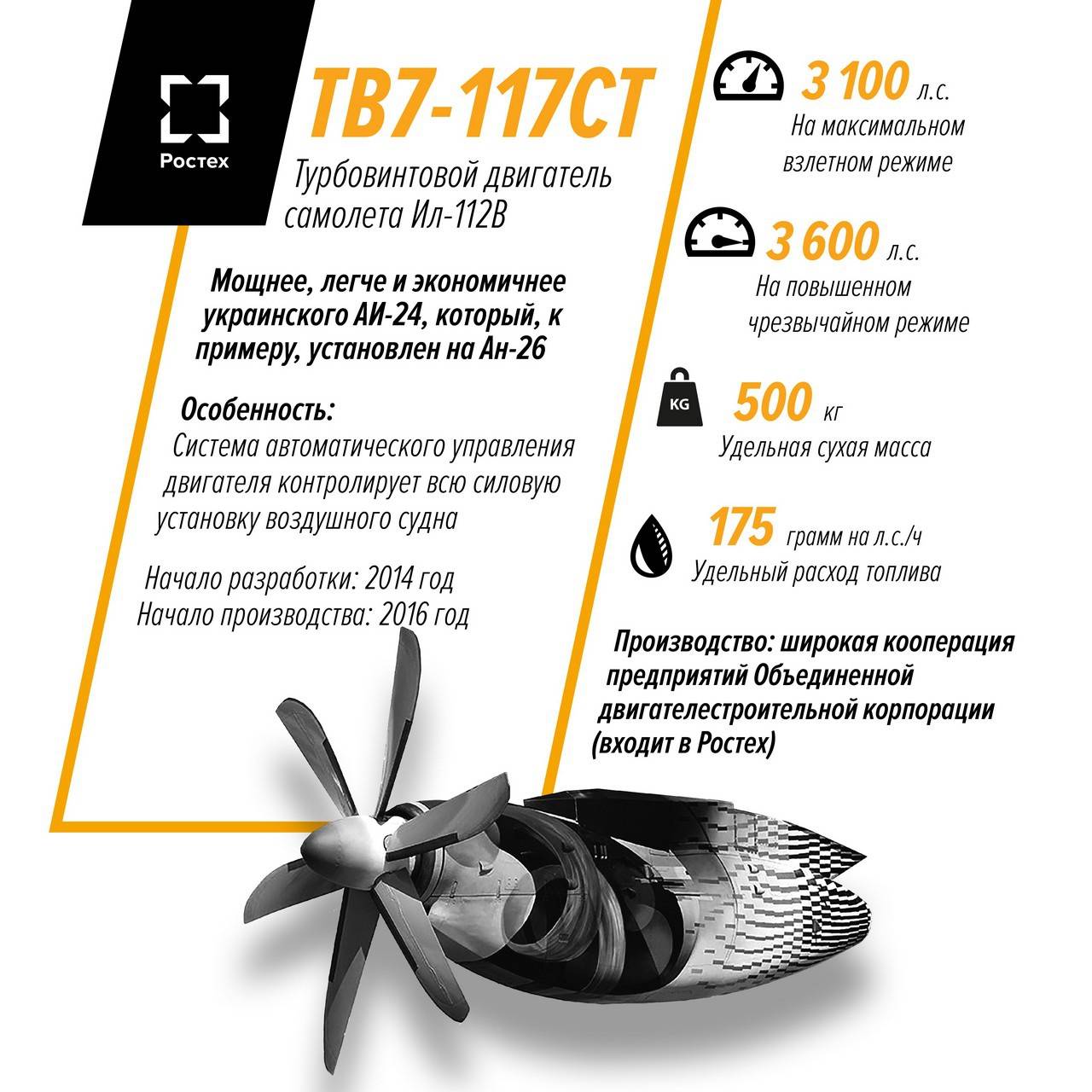 Для самого же АО «ОДК-Климов» (входит в Объединённую двигателестроительную корпорацию Госкорпорации Ростех) второй подъём Ил-112В в небо – бесспорный повод для профессиональной гордости: турбовинтовые двигатели ТВ7-117СТ, разработанные и произведённые на предприятии, обеспечили успешный полёт Ил-112В в рамках лётных испытаний. Как отметил генеральный конструктор АО «ОДК-Климов» Всеволод Елисеев, «для обеспечения лётной программы самолёта Ил-112В был проведён большой комплекс работ по силовой установке – двигателю ТВ7-117СТ и воздушному винту АВ-112». По его словам, в компании выполнили весь комплекс ресурсных стендовых и специальных испытаний в общем объёме наработки двигателей 700 часов. Были успешно завершены четыре этапа лётных испытаний силовой установки в составе летающей лаборатории Ил-76ЛЛ, а также проведены работы по наземным и цеховым отработкам в составе самого самолёта, в том числе проверки внедрённых мероприятий, и скоростные пробежки.
