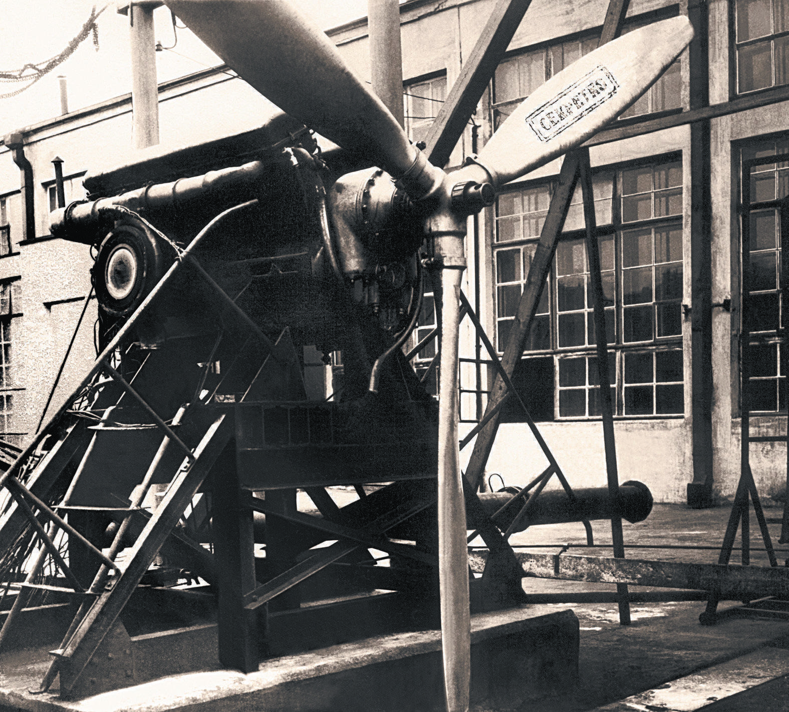 30-е годы. Испытание на открытом стенде первого советского поршневого двигателя М-34 с водяным охлаждением. Фото: Предоставлено “ЦИАМ им. П.И. Баранова”