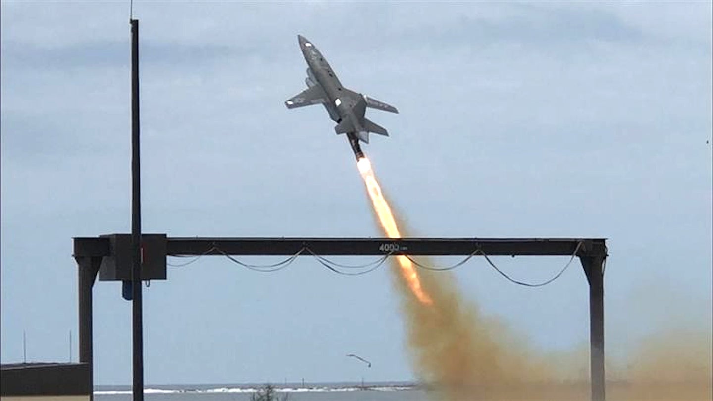 Запуск беспилотника Kratos UTAP-22 с «компьютерным мозгом» на борту