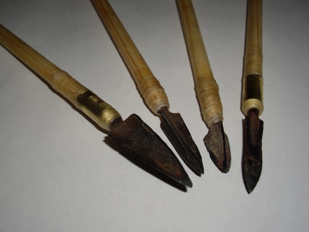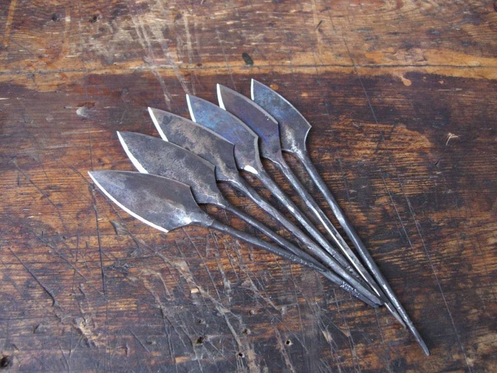 Кроме этого, боевые наконечники можно изготавливать из распиленных старых ножниц, соединенных вместе ножевых лезвий, заточенного напильника, каменного осколка.