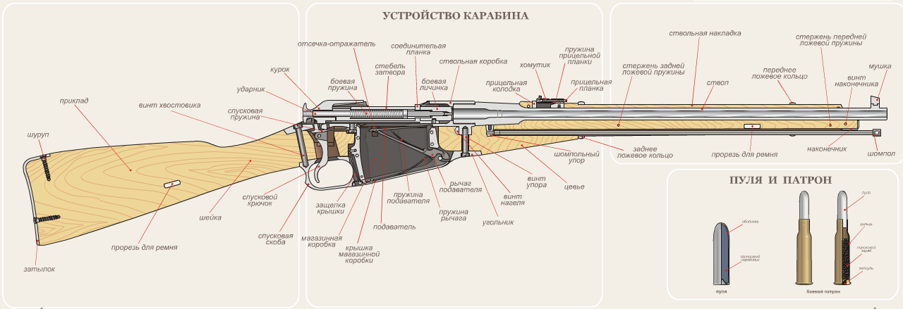 Почему «трехлинейка»? В русской императорской армии калибр измерялся не в миллиметрах, а в линиях. Линия – это одна десятая дюйма, а три линии и есть 7,62 мм. Было три образца «трехлинеек»: пехотная, драгунская и казачья. Отличались они по длине. Кроме того, у казачьей винтовки не было штыка.