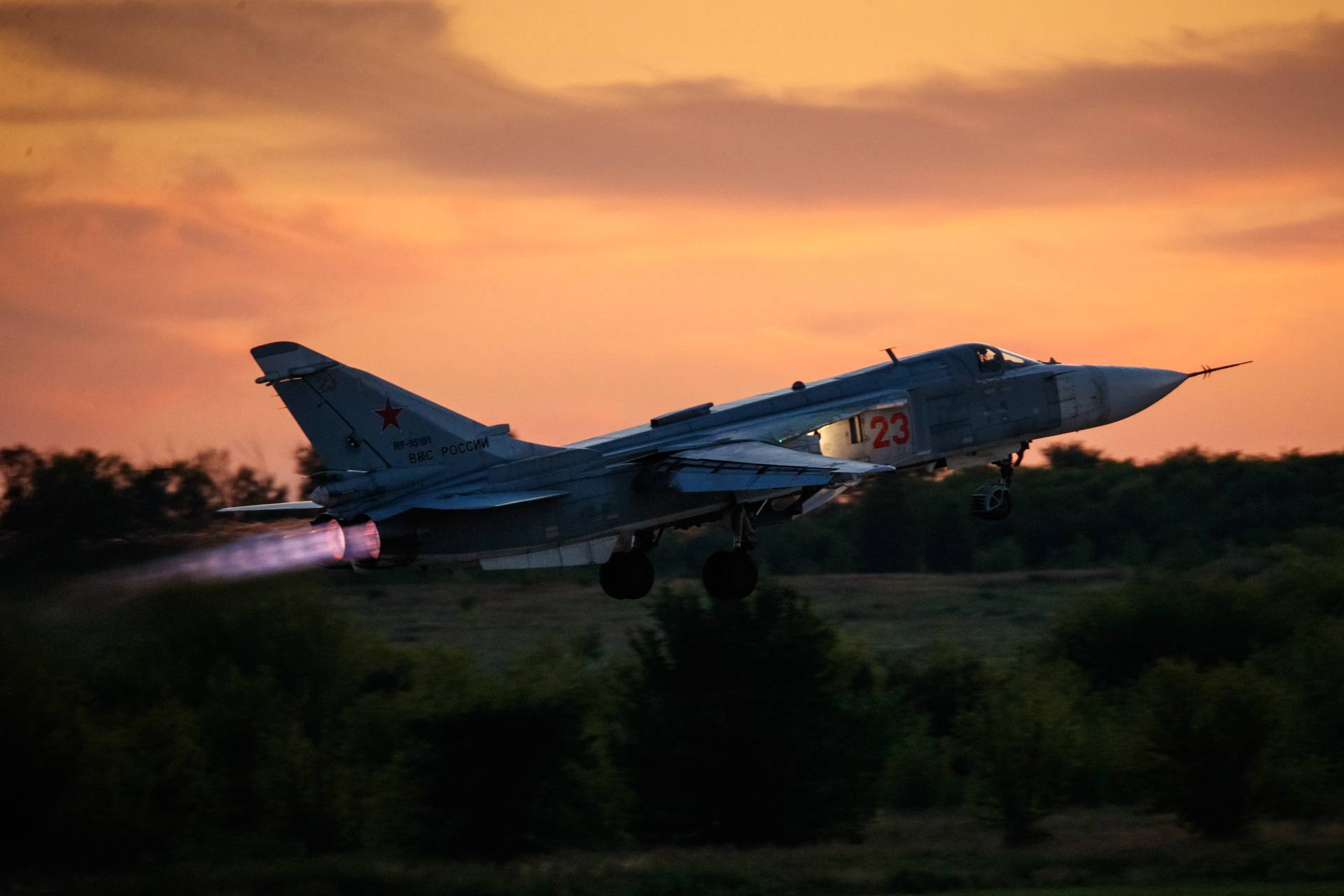 - Фронтовой бомбардировщик Су-24М взлетает с аэродрома