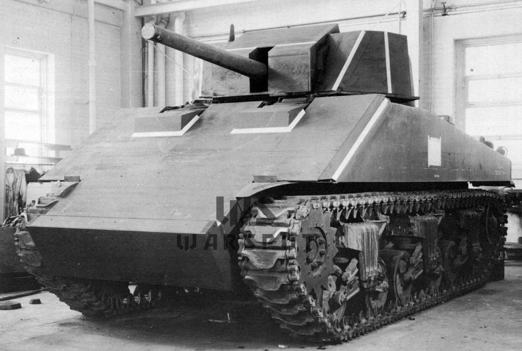 Единственным серийным американским танком был М2, вооруженный 37-мм пушкой и восемью пулеметами. Его планировали запустить в крупносерийное производство в 1940 году, но в последний момент приказ был отменен. По сравнению с характеристиками немецких танков, 37-мм пушка выглядела абсолютно жалко и бесперспективно. А установить более мощное 75-мм орудие в существующую башню было невозможно. Тогда-то и родилась идея создать многобашенный танк с 75-мм пушкой в бортовом спонсоне.