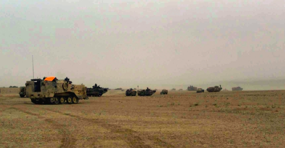 M9 ACE and other vehicles of Headquarters Company, Regimental Combat Team 1, US Marines in the Kuwaiti desert. Photo: Cpl Mace M. Gratz