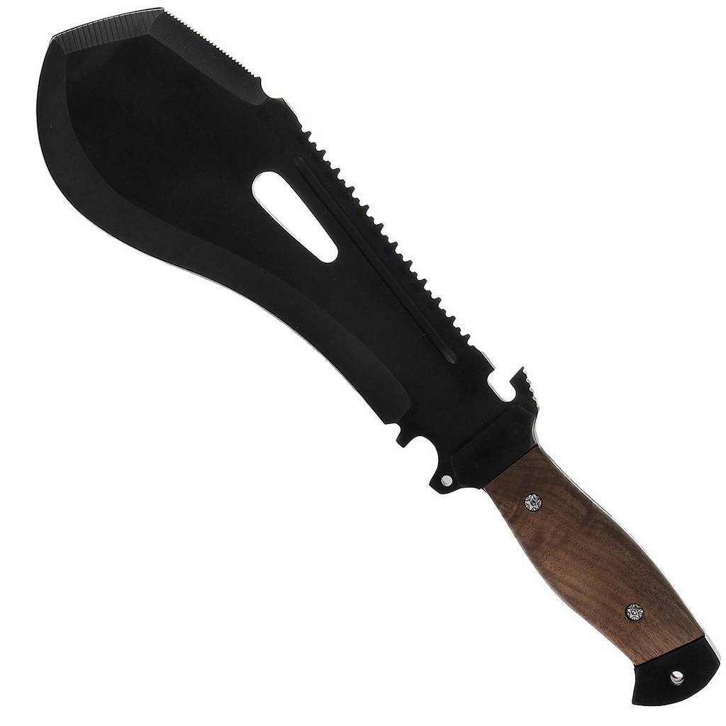 требуется практика для должного использования Kukri Plus не сильно улучшил стандартный боевой кукри от Cold Steel, но лишь потому, что совершенство в этом не нуждается. 305 миллиметровое лезвие углеродистой стали очень удобно при резке благодаря расширению лезвия на конце, его вес при обратном режущем движении сделает всю работу и снизит нагрузку на руку. Выкован из высококачественной углеродистой стали SK-5, он может быть заточен до бритвенной остроты, однако затупиться может быстрее, чем некоторые конкуренты. Лезвие немного короче, чем у обычного мачете. Из-за этого он менее удобен для рубки низких веток, лиан и виноградных лоз. Зато он полезен в лагере как нож общего назначения и для самообороны благодаря конической режущей кромке, текстурированной рукояти, острому лезвию и возможности использования на очень близком расстоянии. Усиленная рукоять может быть использована как для колки орехов, так и для не летальной атаки. Более дешевый вариант, это кукри Ka-Bar, который так же является хорошим выбором.