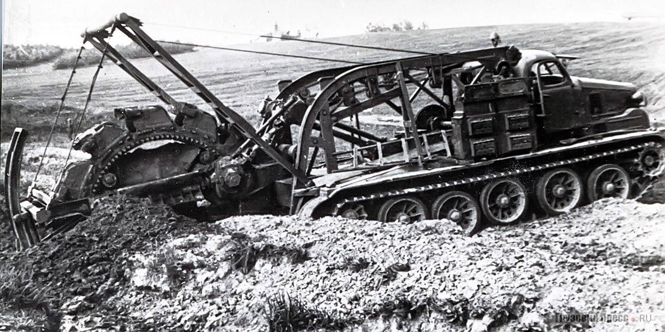 Большие задачи требовали больших машин, и после войны они не преминули появиться. Высокоэнергетичные гусеничные транспортёры АТ-Т, выпускаемые в 1949–1979 гг. на Харьковском заводе транспортного машиностроения, стали основой для большой гаммы высокопроизводительных машин. Удлинённое изделие 426У для наведения переправ, установки электростанций и балок, изделие 409У и 405МУ для траншейных БТМ и БТМ-3, котлованных МДК-2, путепрокладочного оборудования БАТ и многих др. землеройных и экскавационных орудий с активными и пассивными рабочими органами.