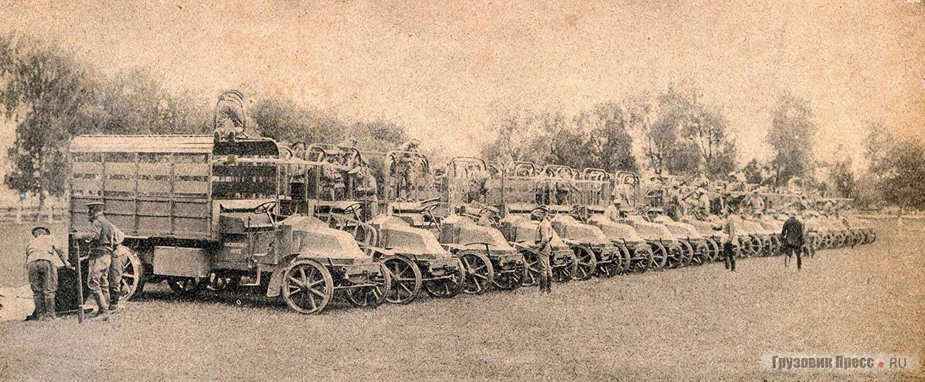 Как только автомобили стали неотъемлемым техническим средством вооружённых сил, колёсную технику начали привлекать и в инженерном деле. Во время III Международной автомобильной выставки в мае 1910 г. Главное инженерное управление Русской императорской армии испытало на шоссе между Петербургом и Москвой 16 грузовых автомобилей и 2 трактора с прицепными тележками. Выводы комиссии по использованию механического транспорта для перевозки тяжёлых грузов были положительными. Однако масштабное оснащение инженерных частей автомобилями началось лишь в 1914 г., и использовались они в основном для перевозки стройматериалов.