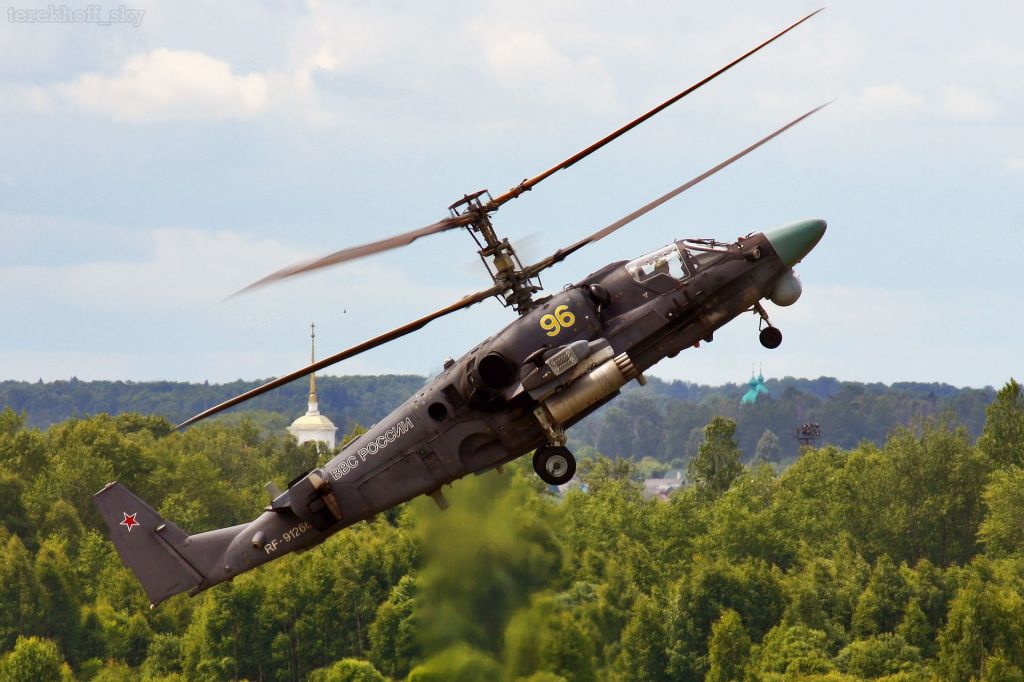 Ка-52 – разведывательно-ударный вертолет соосной схемы, у которого пара основных винтов вращается параллельно в разные стороны, а рулевой винт отсутствует. Это придает машине компактность и маневренность, что, например, оказывается очень важным при посадке на небольшие площадки или полетах при сильном боковом ветре. Другой особенностью «Аллигатора» является то, что экипаж сидит рядом в одной кабине, а не друг за другом, как в других ударных машинах.
