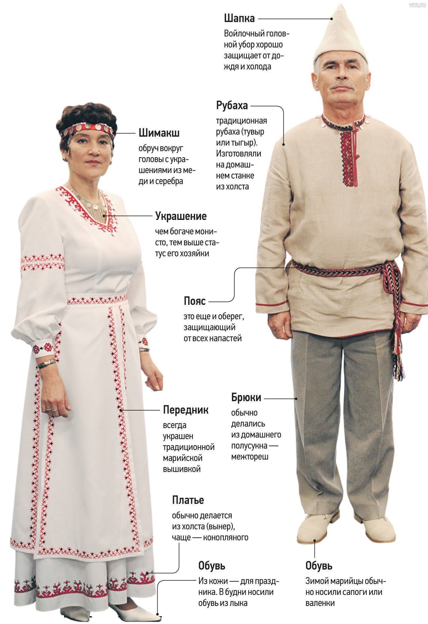 - Одежда марийцев традиционно белая, украшена богатой вышивкой;