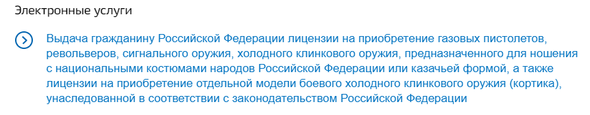 Разрешительные документы проще всего оформить в личном кабинете на сайте Госуслуг, для этого в разделе МВД (Безопасность и правопорядок) необходимо найти услугу – «разрешение на хранение и ношение оружия».