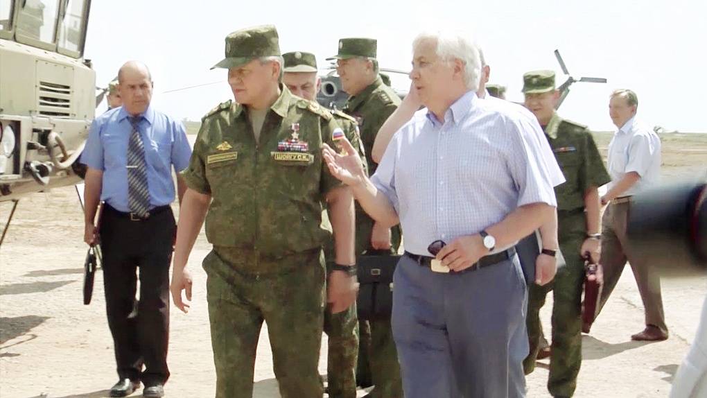Валерий Кашин и министр обороны РФ Сергей Шойгу на полигоне Капустин Яр 27 июня 2013 года.