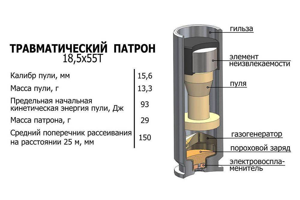 ПБ-4-2. Новая модель главным отличием данного пистолета от предшественников является совершенно новый патрон 18,5×55 ТД. Увеличенные размеры пули дают высокий уровень останавливающей способности при меньшем риске нанести тяжелые телесные повреждения.