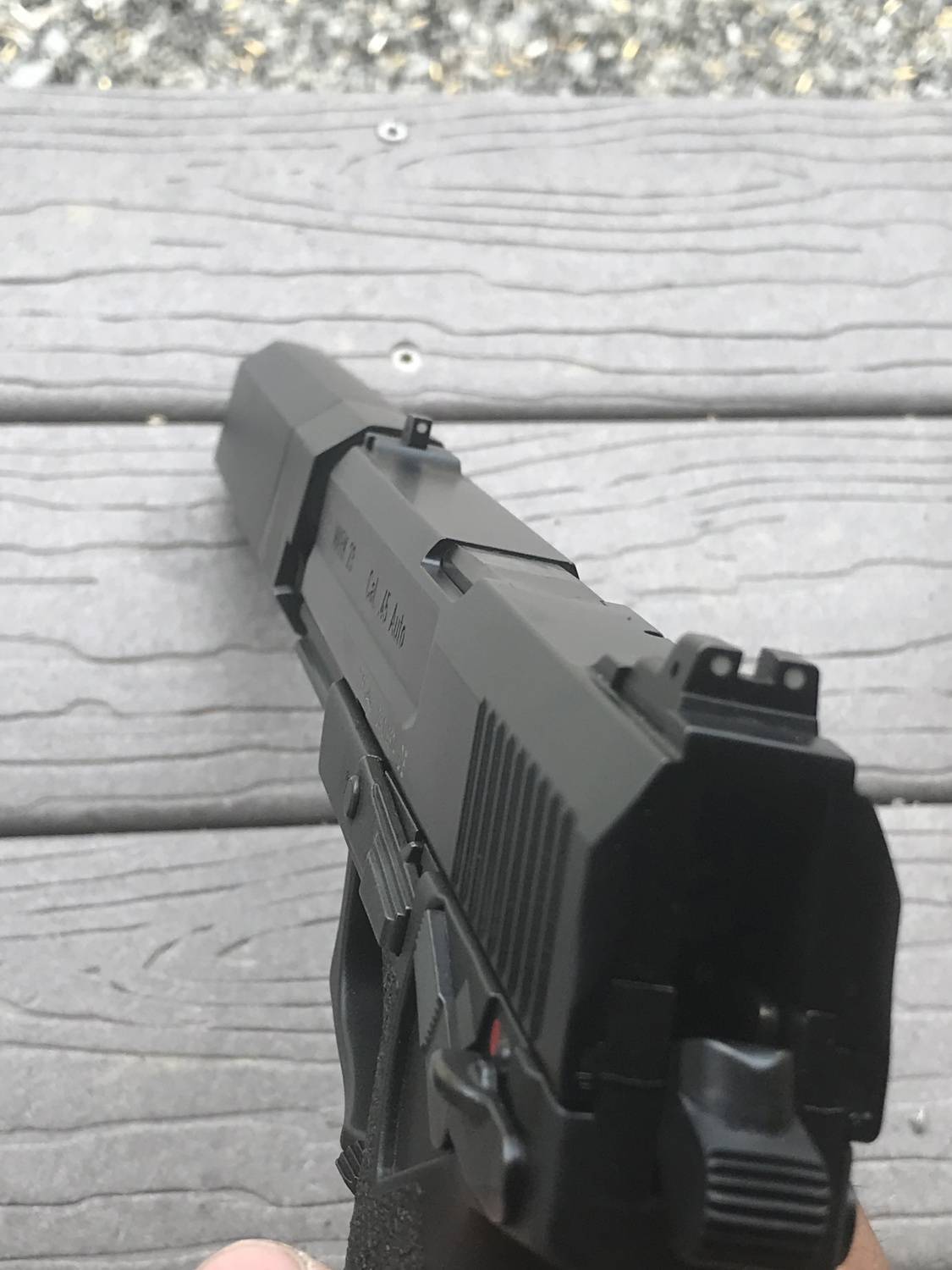 Another consideration is that my Osprey45 has a wrap around the body of the can. So my friend Corey met up with me and brought his stock Osprey45 to compare and I compared the MK23 to my FNX45 tactical.