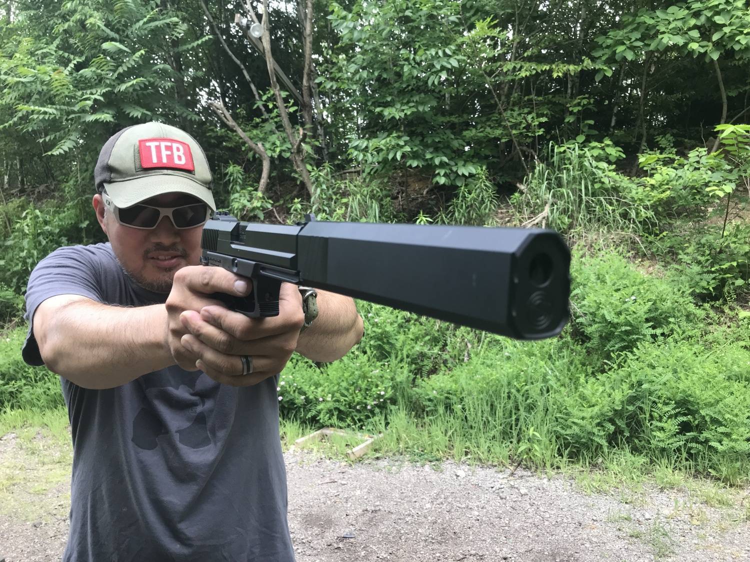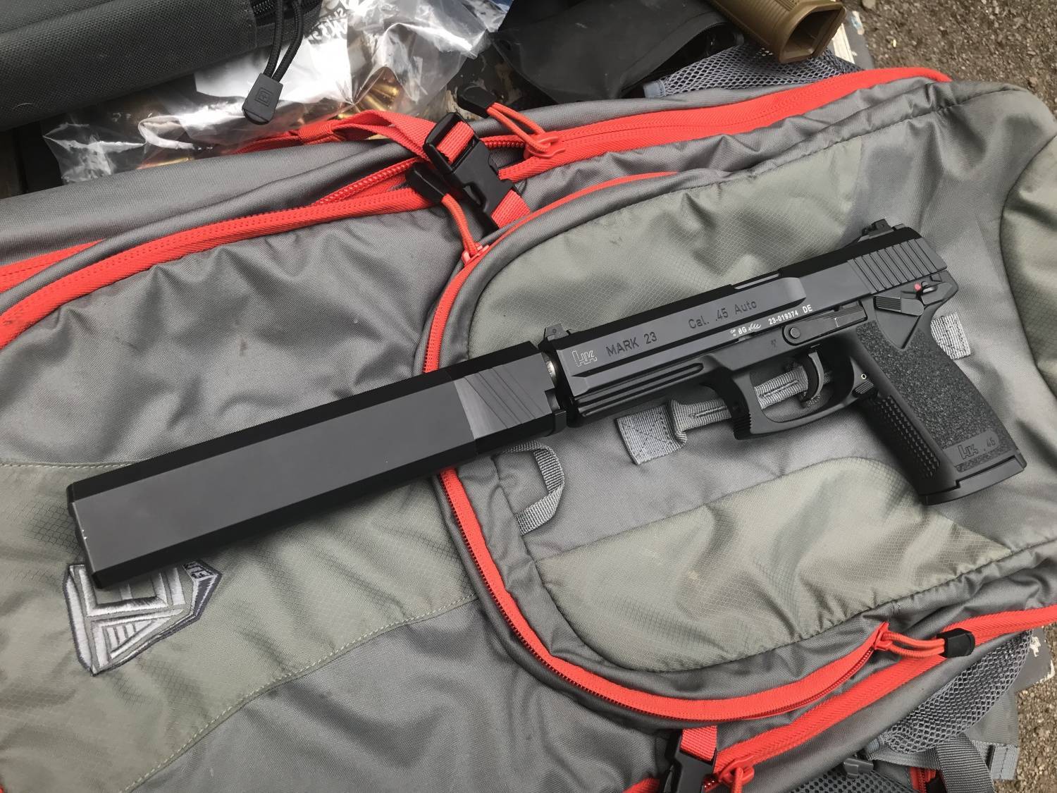 Minh brought along his HK pistol collection as well as his Rugged Obsidian 45 can. Look how much bigger the MARK23 is compared to the USP Tactical below it.