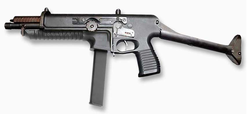 - Пистолет-пулемет оснаще 20-сантиметровым стволом.