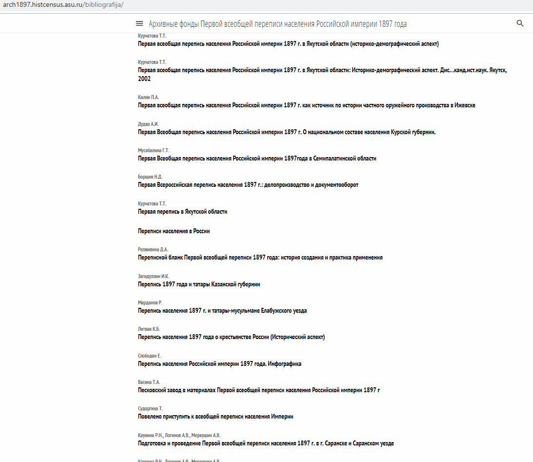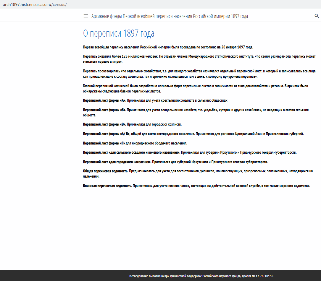 Сайт с архивными фондами Всеобщей переписи населения 1897 года